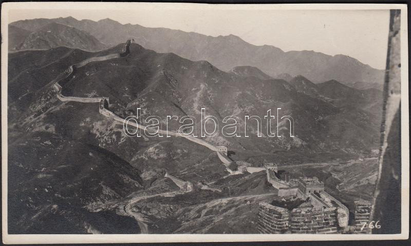 Leírás: 1922 A kínai fal látképe, Pekingtől 14 mérföldnyire, fotó hátoldalán felirattal, 8x14 cm.