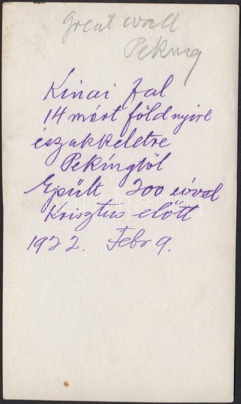 1922 A kínai fal látképe, Pekingtől 14 mérföldnyire, fotó hátoldalán f... https://www.darabanth.com/hu/198-Gyorsarveres/198.0/Festmeny-mutargy-papirregiseg-egyeb/Foto~200035/1922-A-kinai-fal-latkepe-Pekingtol-14-merfoldnyire-foto-hatoldalan-felirattal-8x14-cm~II766559