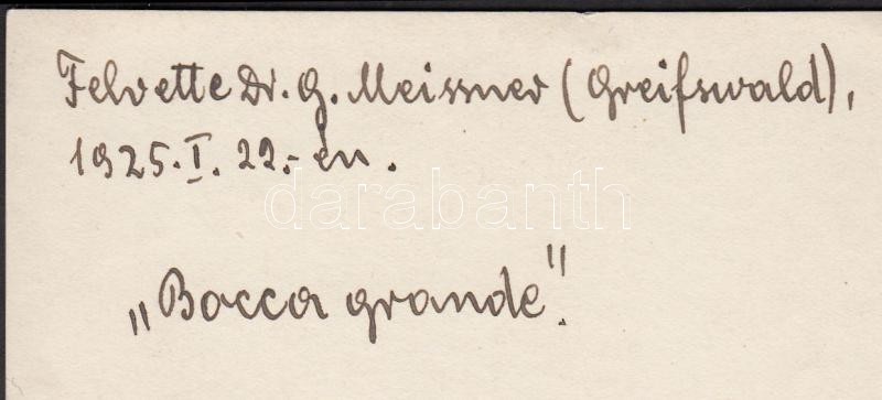 1925 Dr. G. Meissmer: Bocca grande, feliratozva, 9x12 cm. https://www.darabanth.com/hu/198-Gyorsarveres/198.0/Festmeny-mutargy-papirregiseg-egyeb/Foto~200035/1925-Dr-G-Meissmer-Bocca-grande-feliratozva-9x12-cm~II766487