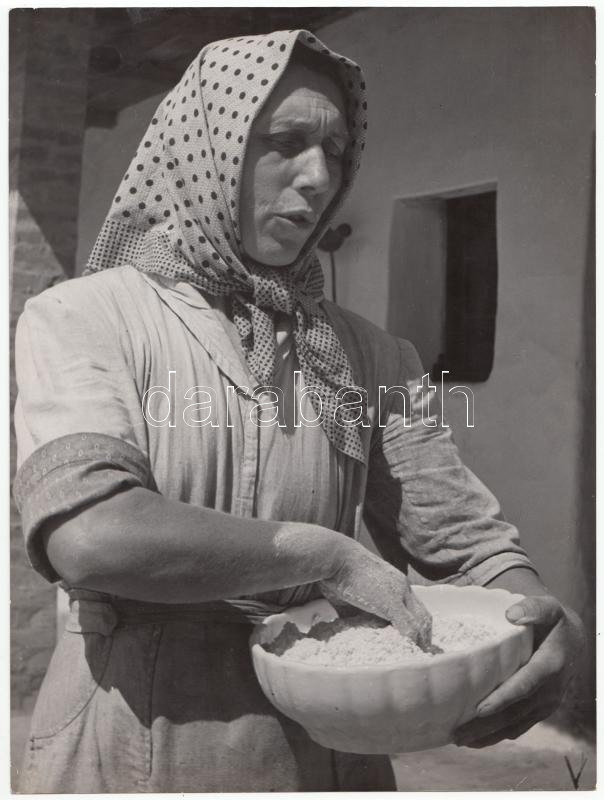 Leírás: cca 1950-1960 Kotnyek Antal(1921-1990): Készül a pogácsa Kertán, vintage, szocreál fotó, jelzetlen, a szerző hagyatékából, 24x18 cm.