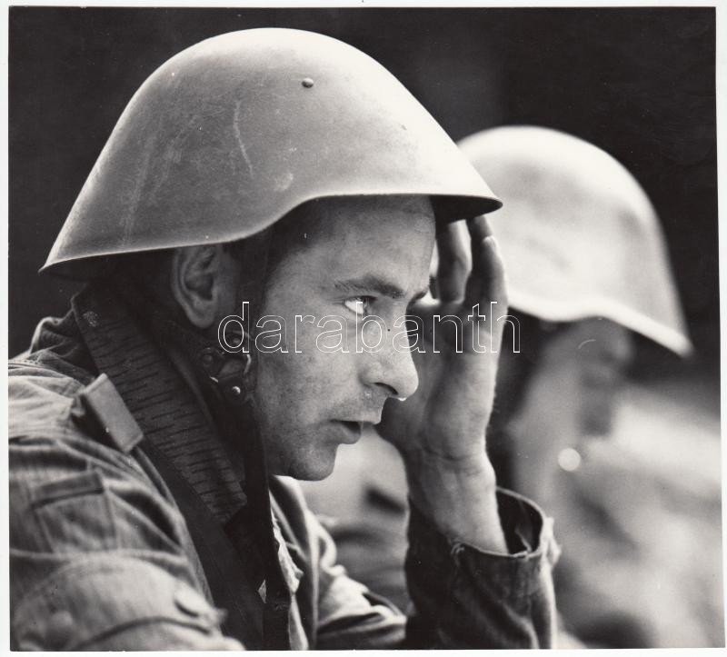 Leírás: cca 1950-1960 Eberhard Klöppel (Berlin): Katonák a gyakorlótéren, pecséttel jelezve, 18x20 cm/