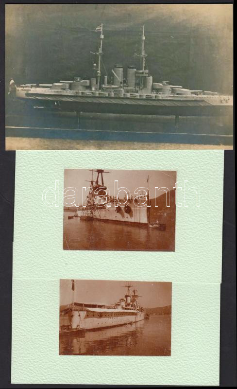 Leírás: cca 1960 Hadihajókat ábrázoló fotók, 3 db, kettő közülök kartonra ragasztva, olasz hadihajó felirattal a hátukon, 6x8 és 10x15 cm-es méretben.