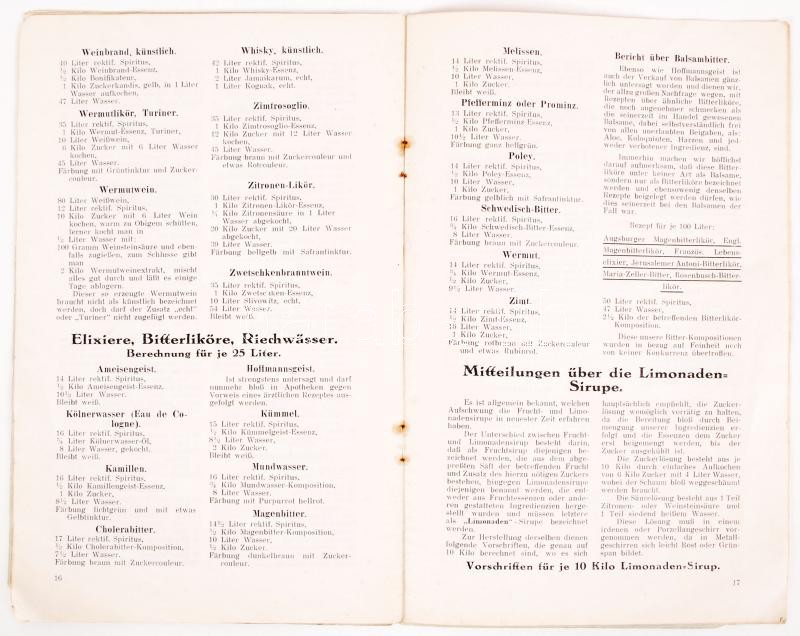 Leírás: cca 1930 Előírások szeszes italok előállításához német nyelven, 20 p.