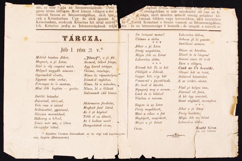 1879, Ócsa, Szabó Géza evangélikus lelkész verse laptöredéken, gyászbe... https://www.darabanth.com/hu/198-Gyorsarveres/198.0/Festmeny-mutargy-papirregiseg-egyeb/Tortenelmi-dokumentumok-keziratok-erdekessegek~200031/1879-Ocsa-Szabo-Geza-evangelikus-lelkesz-verse-laptoredeken-gyaszbeszed-kezirassal~II768017