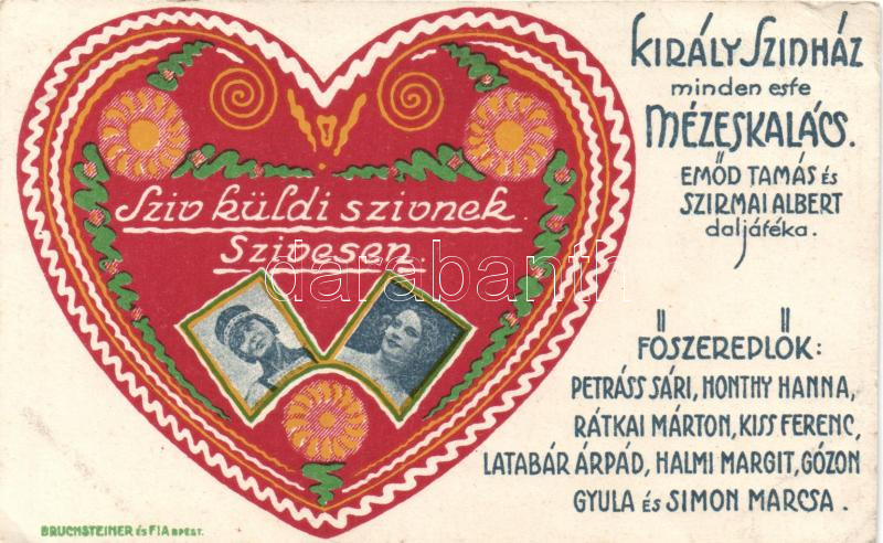 Király Színház, Szív küldi szívnek. Szívesen. / theatre, advertisement... https://www.darabanth.com/hu/198-Gyorsarveres/198.0/Kepeslapok/Szinesz~600408/Kiraly-Szinhaz-Sziv-kuldi-szivnek-Szivesen-theatre-advertisement-EK~II768732