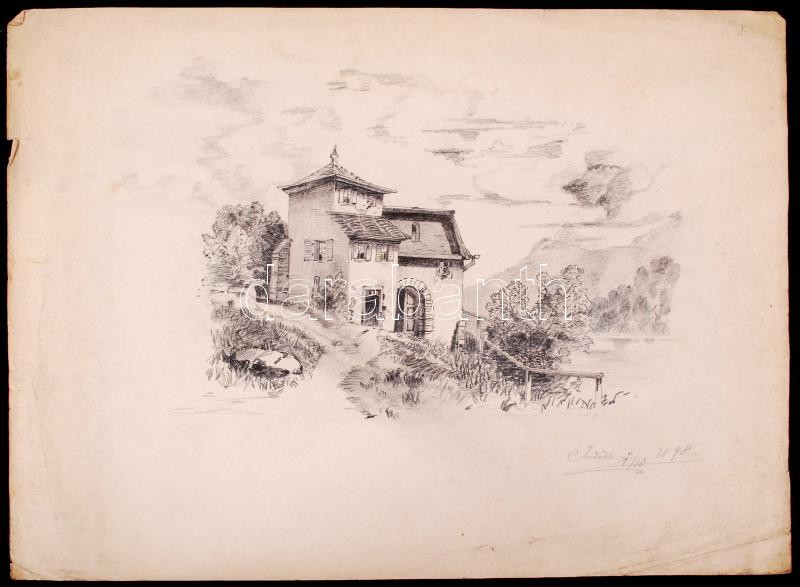 Bónis Judith: Ház a folyó mellett (1898). Ceruza, papír, jelzett, 15×2... https://www.darabanth.com/hu/199-Gyorsarveres/199.0/Festmeny-mutargy-papirregiseg-egyeb/Festmenyek-es-grafikak~1/Bonis-Judith-Haz-a-folyo-mellett-1898-Ceruza-papir-jelzett-15C39721-cm~II775057