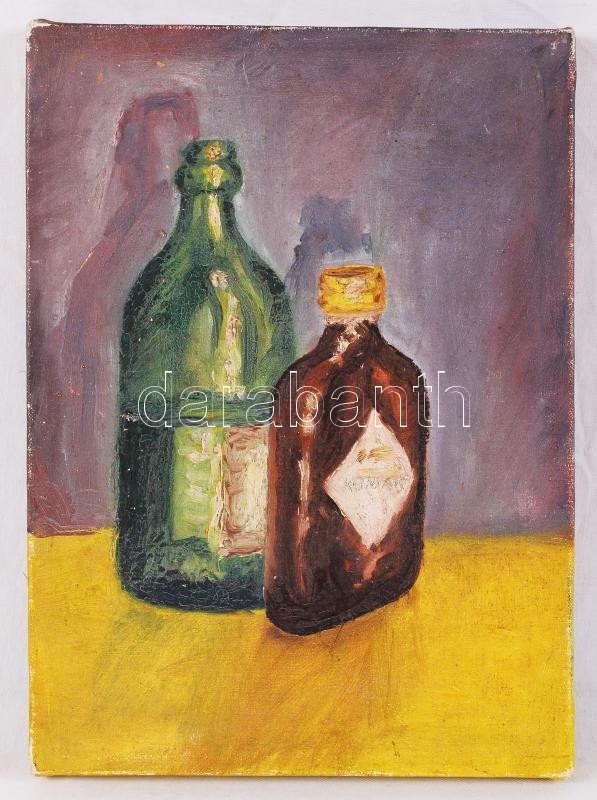 Jelzés nélkül: Palackok. Olaj, vászon, 35x24cm (a vásznon két kis sérü... https://www.darabanth.com/hu/199-Gyorsarveres/199.0/Festmeny-mutargy-papirregiseg-egyeb/Festmenyek-es-grafikak~1/Jelzes-nelkul-Palackok-Olaj-vaszon-35x24cm-a-vasznon-ket-kis-serules~II781178