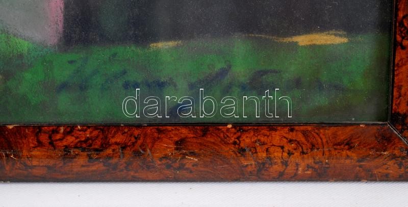 Leírás: Klimó István (1883-1961): Házak a sziklák alatt. pasztell, papír, üvegezett keretben, 39×50 cm