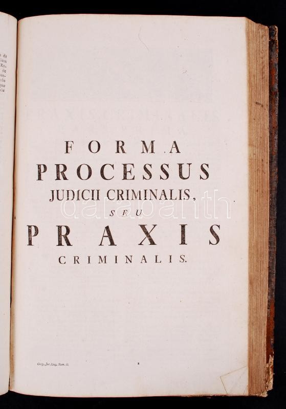 Corpus Juris Hungarici, seu decretum generale inclyti regni Hungariae, partiumque eidem annexarum. II. kötet Tomus II. continens decreta, constitutiones, et articulos... regum, ac … statuum & ordinum regni Hungariae partiumque eidem annexarum... Tyrnaviae [Nagyszombat], 1751. Typ. academicis soc. Jesu. 8, 426 p., 229 p. A fejezetek elején a magyar királyok rézmetszetű portréival díszítve. Korabeli, bordázott, aranyozott bőrkötésben, gerincén kis hibákkal