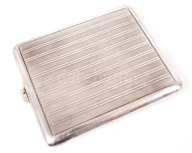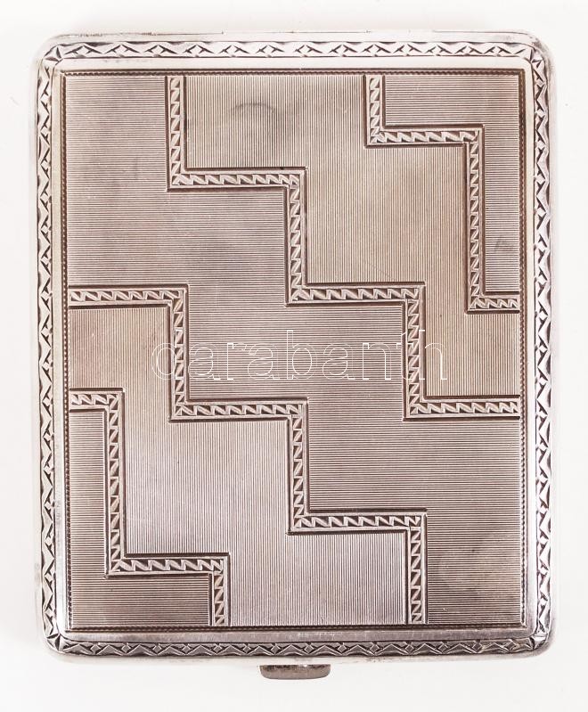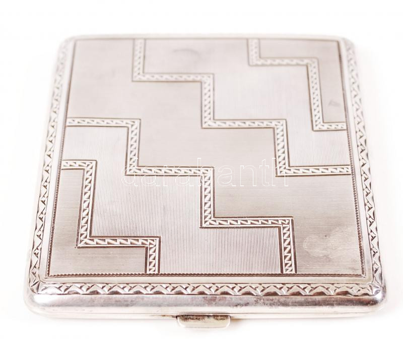cca 1910 Ezüst (Ag) cigaretta térca geometrikus díszítéssel, belül aranyozott EK mesterjeggyel 0,900-as finomság / Silver cigarette holder with EK master sign. 0,900 fineness 136g
