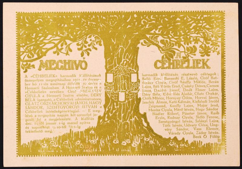 1921 Meghívó a Céhbeliek festmény kiállítására. https://www.darabanth.com/hu/199-Gyorsarveres/199.0/Festmeny-mutargy-papirregiseg-egyeb/Nyomtatvanyok~6/1921-Meghivo-a-Cehbeliek-festmeny-kiallitasara~II764392