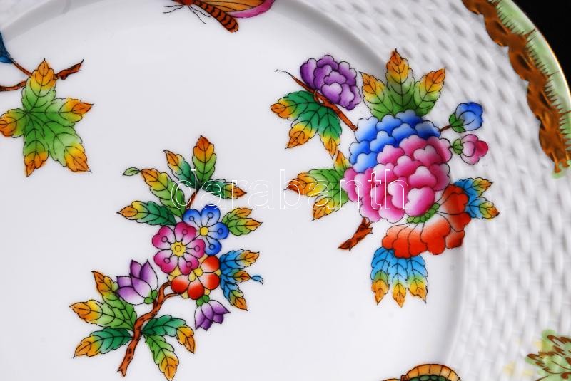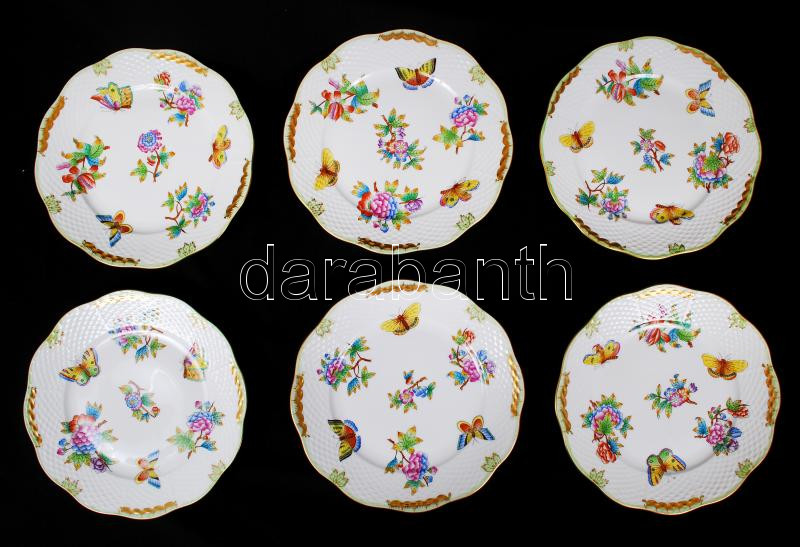 Leírás: Herendi Viktória mintás süteményes tányér, kézzel festett, jelzett, hibátlan, összesen:6 db, d:20,5 cm