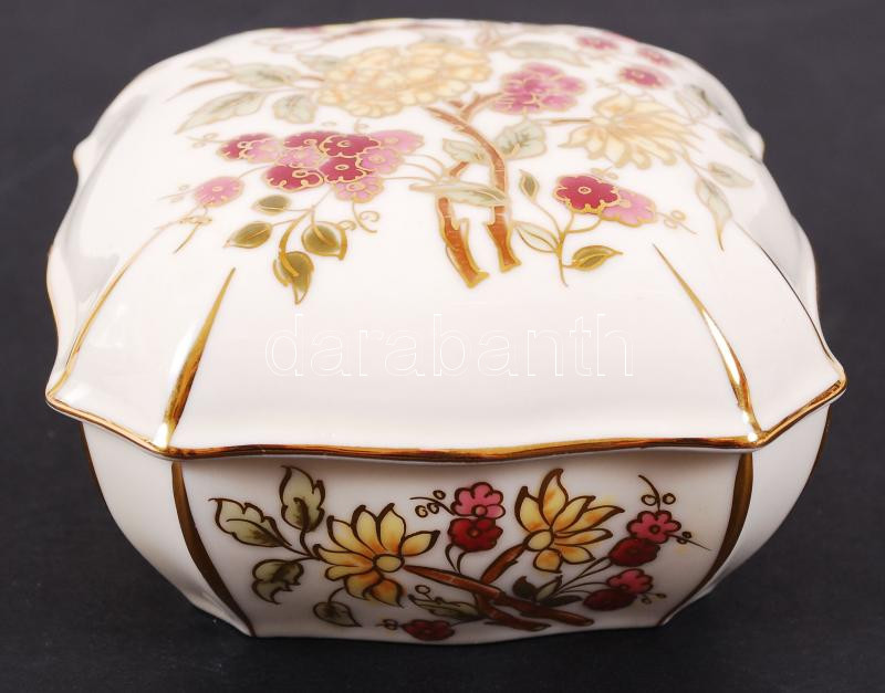 Leírás: Zsolnay pillangó mintás dobozka, kézzel festett, jelzett, hibátlan, 10×10 cm, m:6 cm