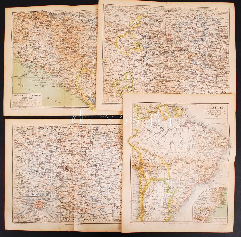 Leírás: 1886 4 db térkép, Meyers Lexikonból, 21×27 cm