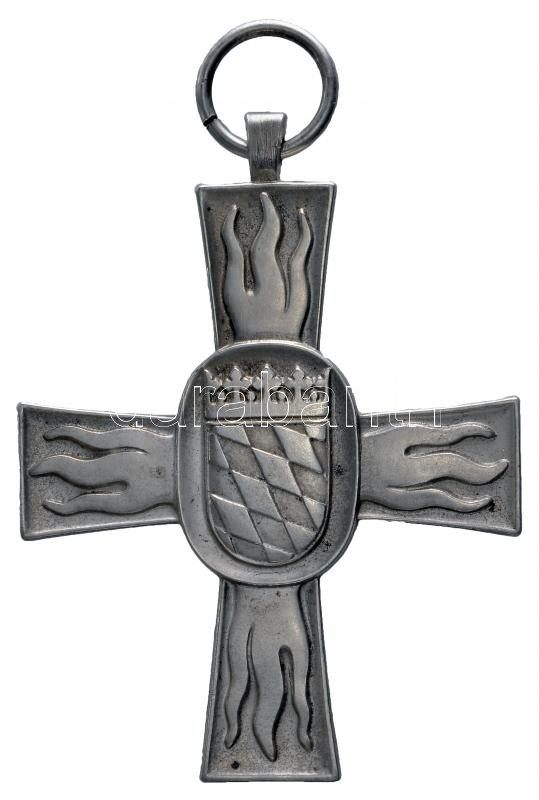 NSZK / Bayern DN. "Tűzoltói szolgálati kereszt 25. év után" ezüstözött fém kitüntetés mellszalag nélkül T:2