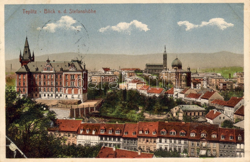 Teplitz mit Synagoge (fa) https://www.darabanth.com/hu/2-Nagyaukcio/2.1/Motivum-kepeslapok/Judaika~591/Teplitz-mit-Synagoge-fa~II43067