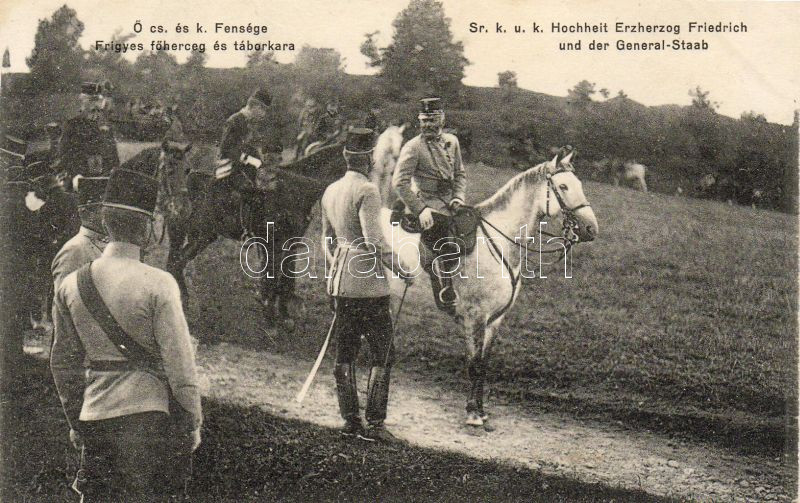 Erzherzog Friedrich und der General - Staab https://www.darabanth.com/hu/2-Nagyaukcio/2.1/Motivum-kepeslapok/Katonai-Militaria~622/Erzherzog-Friedrich-und-der-General--Staab~II40184