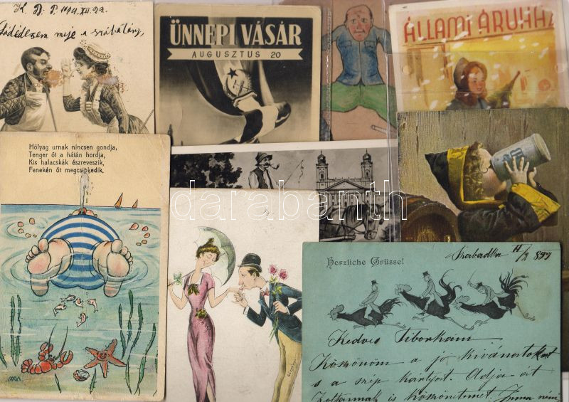 Leírás: 1900-1940. 90 db motívumlap, közte jobbak, lithok, vegyes minőség / 90 Motivkarten, dabei Lithos und bessere, untersch. Erhaltung