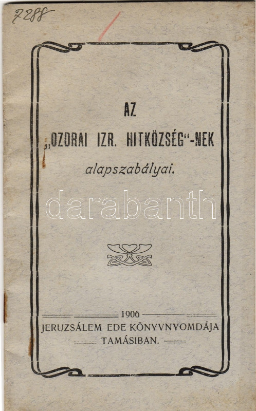 1906 Az ozorai izr. hitközségnek alapszabályai. (Jeruzsálem Ede könyvn... https://www.darabanth.com/hu/2-Nagyaukcio/2.1/Mutargy-papirregiseg/Judaika~538/1906-Az-ozorai-izr-hitkozsegnek-alapszabalyai-Jeruzsalem-Ede-konyvnyomdaja-Tamasi-Grun~II35533
