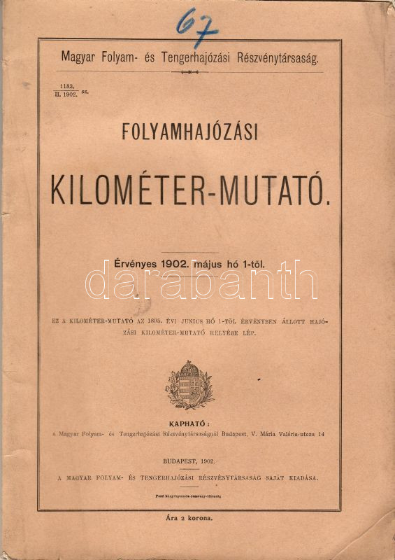 1902 Magyar Folyam- és Tengerhajózási Rt. Folyamhajózási kilómétermutató; Pesti könyvnyomda Rt. / Kilometerregister der Ung. Fluss- und Seefahrt AG für Flussfahrt; Pester Buchdruckerei AG
