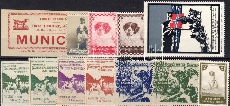Leírás: 1903-1911 12 klf kutya motívum levélzáró / Hunde, 12 versch. Vignetten