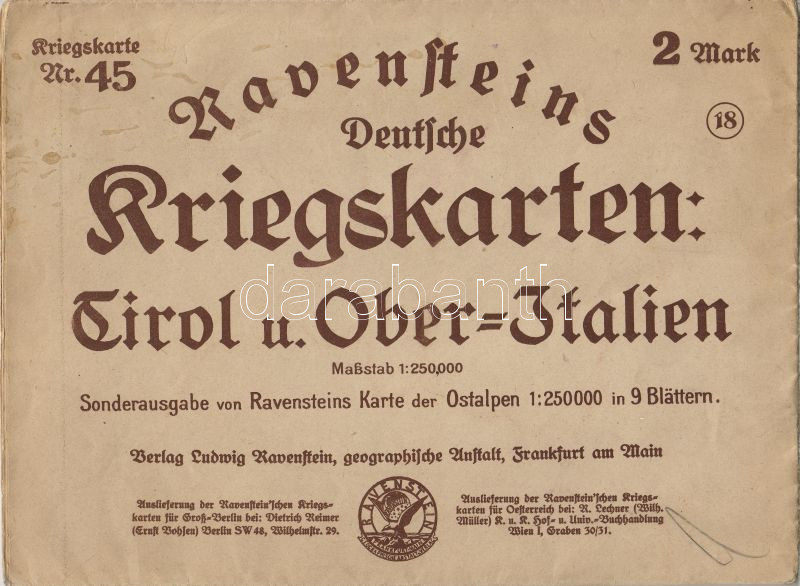 1915 Tirol és Észak-Olaszország háborús térképe / Deutsche Kriegskarte... https://www.darabanth.com/hu/2-Nagyaukcio/2.1/Mutargy-papirregiseg/Terkepek-Landkarten~533/1915-Tirol-es-Eszak-Olaszorszag-haborus-terkepe-Deutsche-Kriegskarte-von-Tirol-und-Oberital~II41426