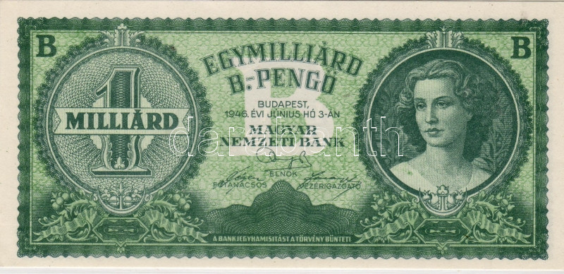1946 1.000.0000.000B.-pengő "zöld" T:I RRR!!! https://www.darabanth.com/hu/2-Nagyaukcio/2.1/Numizmatika/Magyar-es-kulfoldi-bankjegyek-Ungarische-und-auslandische-Banknoten~523/1946-10000000000B-pengo-zold-TI-RRR~II40231