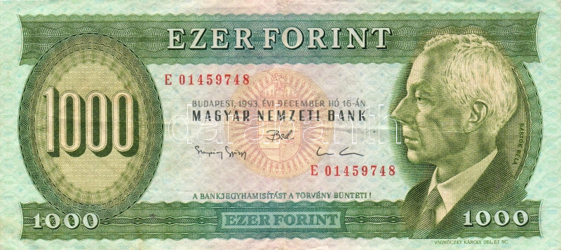 1993 1000Ft "E" betűjellel 2db T:II https://www.darabanth.com/hu/2-Nagyaukcio/2.1/Numizmatika/Magyar-es-kulfoldi-bankjegyek-Ungarische-und-auslandische-Banknoten~523/1993-1000Ft-E-betujellel-2db-TII~II41877