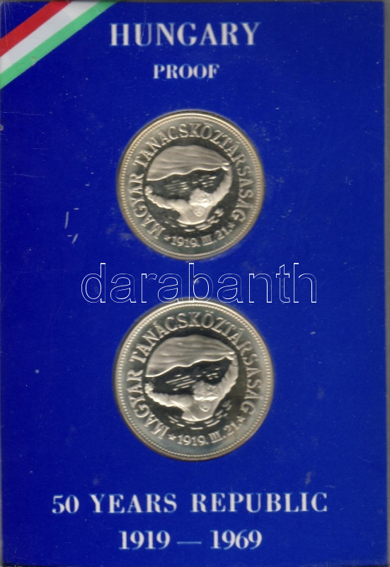 1969. "Tanácsköztársaság" sor 50Ft, 100Ft ezüst, díszdobozban T:PP https://www.darabanth.com/hu/2-Nagyaukcio/2.1/Numizmatika/Magyar-fem-es-ezustpenzek-Ungarische-Metal-und-Silbermunzen~525/1969-Tanacskoztarsasag-sor-50Ft-100Ft-ezust-diszdobozban-TPP~II41321