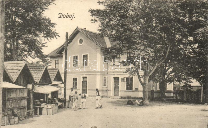 Leírás: Doboj, K.u.K. Militär-Post- und Telegraf-Amt; Verlag Johann Streitz / military post office, market