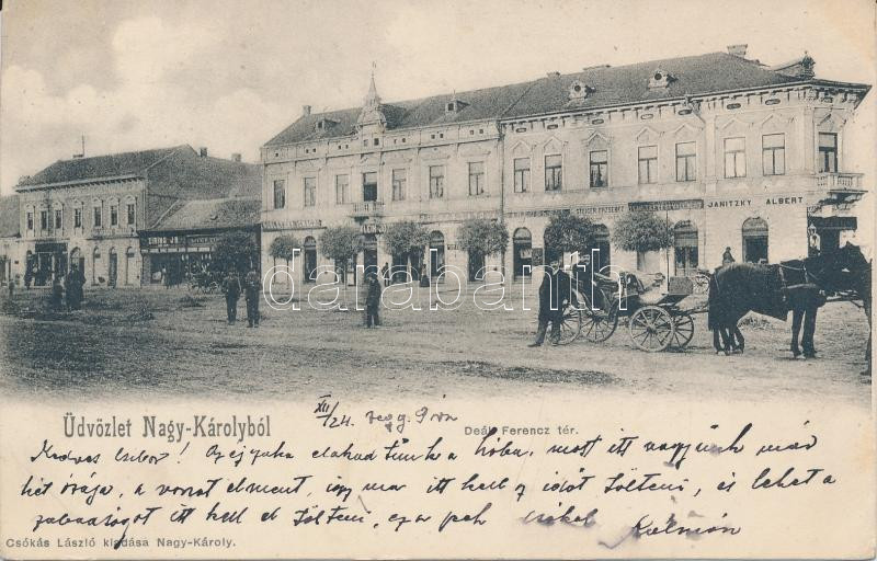 Nagykároly, Deák Ferenc tér, üzletek; Csókás László kiadása / Deák str... https://www.darabanth.com/hu/20-Nagyaukcio/20.1/Magyar-kepeslapok/Erdely~6936/Nagykaroly-Deak-Ferenc-ter-uzletek-Csokas-Laszlo-kiadasa-Deak-street-shops~II973566
