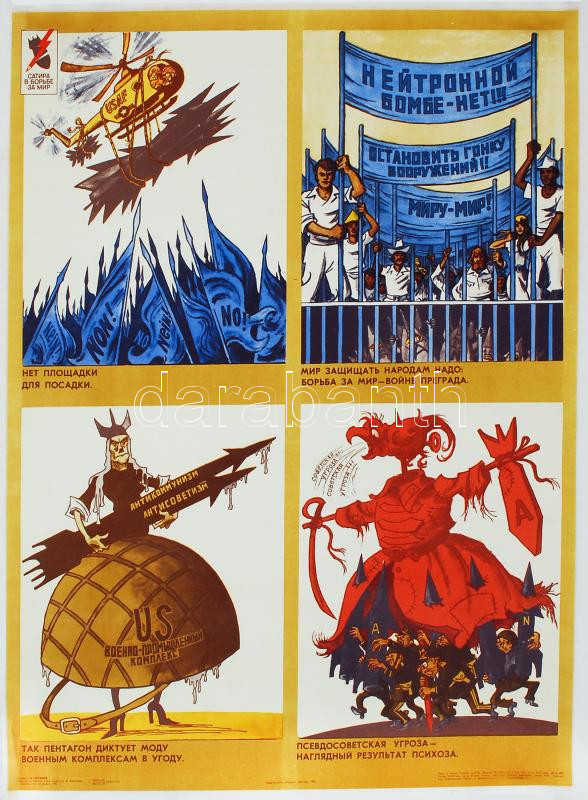 cca 1980 eleje, Szovjet antikapitalista, békeharcos propaganda plakát,... https://www.darabanth.com/hu/20-Nagyaukcio/20.1/Mutargy-papirregiseg/Nyomtatvanyok~6912/cca-1980-eleje-Szovjet-antikapitalista-bekeharcos-propaganda-plakat-feltekerve-64-5x48cm~II989485