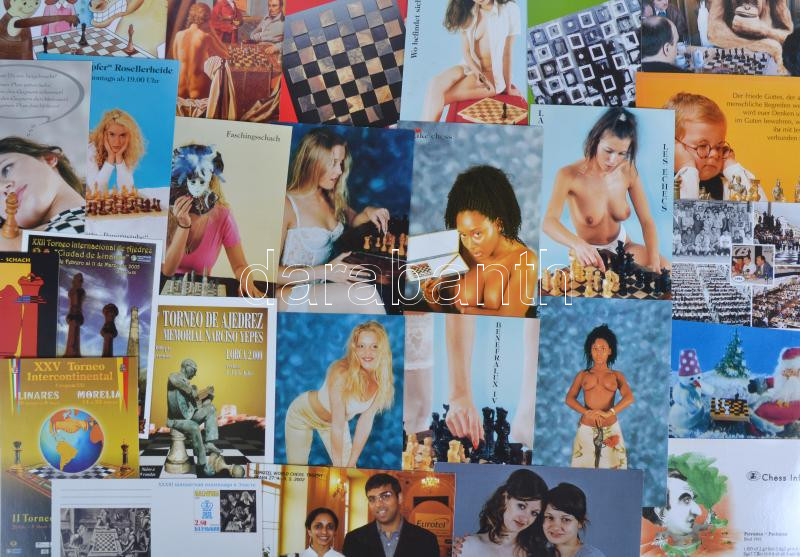 100 db vegyes SAKK képeslap a világ számos országából, köztük erotikus lapok is / 100 modern worldwide CHESS postcards including a couple of erotic cards