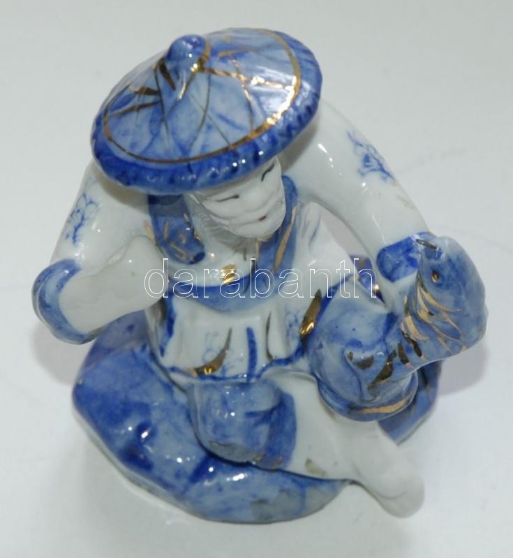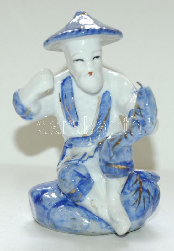 Leírás: Kézzel festett sorszámozott jelzés nélküli porcelán kínai halász figura / Handpainted numbered chinaware fisherman figure 12cm