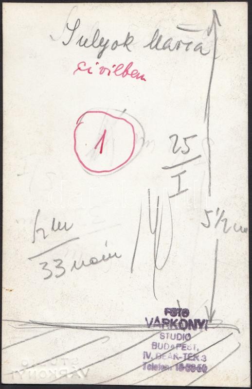 Sulyok Mária fotója. Várkonyi stúdió, pecséttel jelzett 9x14 cm https://www.darabanth.com/hu/200-Gyorsarveres/200.0/Festmeny-mutargy-papirregiseg-egyeb/Alairas~200035/Sulyok-Maria-fotoja-Varkonyi-studio-pecsettel-jelzett-9x14-cm~II784540