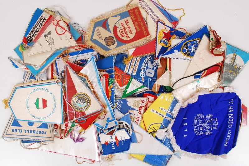 Leírás: 80 db külföldi és magyar textil sportzászló