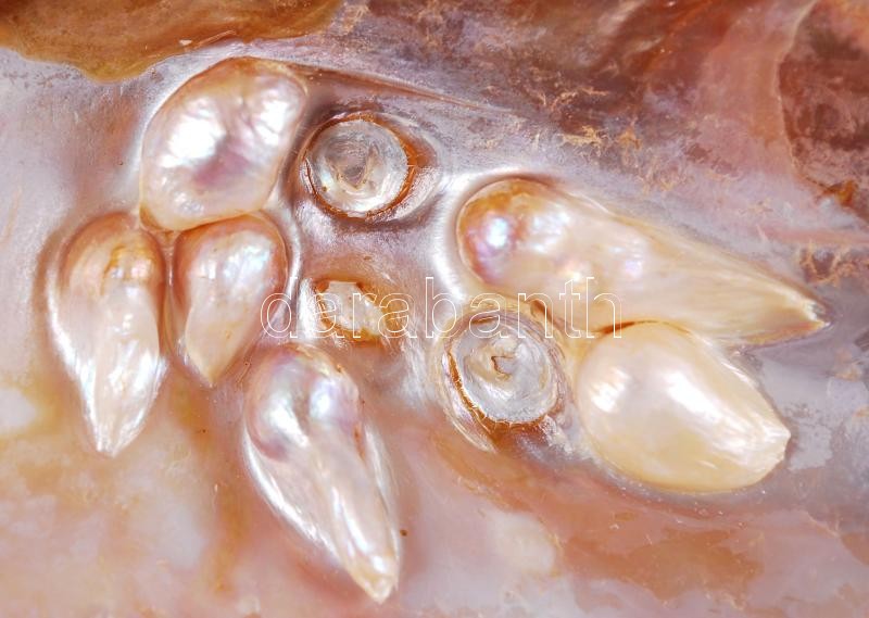 Gyöngykagyló belsejében natúr gyöngyképződményekkel /