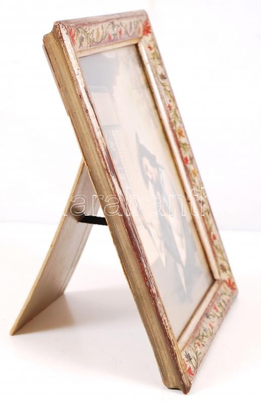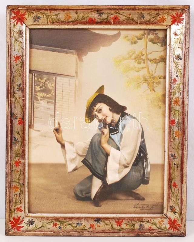 Leírás: Térdeplő nő, színezett fotó, jelzett, 21x28 cm.