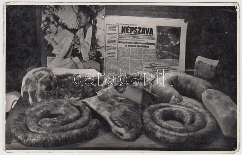 cca 1950-1960 Tiszavölgyi József: Csendélet disznótorossal és Népszavá... https://www.darabanth.com/hu/200-Gyorsarveres/200.0/Festmeny-mutargy-papirregiseg-egyeb/Foto~200036/cca-1950-1960-Tiszavolgyi-Jozsef-Csendelet-disznotorossal-es-Nepszavaval-vintage-foto-pec~II788899