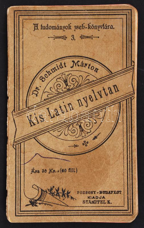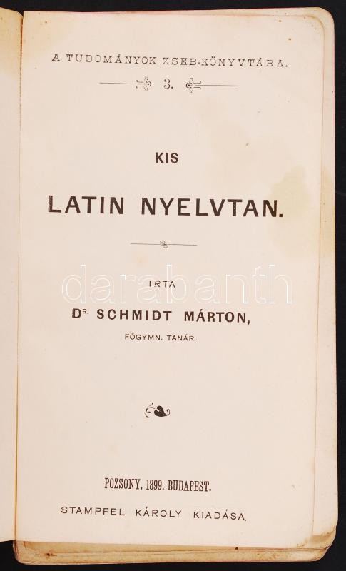 1899 Bp., Dr. Schmidt Márton: Kis Latin nyelvtan, szétesett állapotban... https://www.darabanth.com/hu/200-Gyorsarveres/200.0/Festmeny-mutargy-papirregiseg-egyeb/Konyvek-Egyeb-ritkasagok~200026/1899-Bp-Dr-Schmidt-Marton-Kis-Latin-nyelvtan-szetesett-allapotban~II786121
