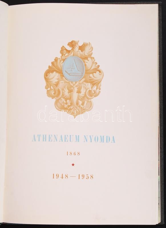 Athenaeum Nyomda 1948-1958. A nyomda története képekkel illusztrálva, ... https://www.darabanth.com/hu/200-Gyorsarveres/200.0/Festmeny-mutargy-papirregiseg-egyeb/Konyvek-Egyeb-ritkasagok~200026/Athenaeum-Nyomda-1948-1958-A-nyomda-tortenete-kepekkel-illusztralva-mubor-kotes-26p~II782886