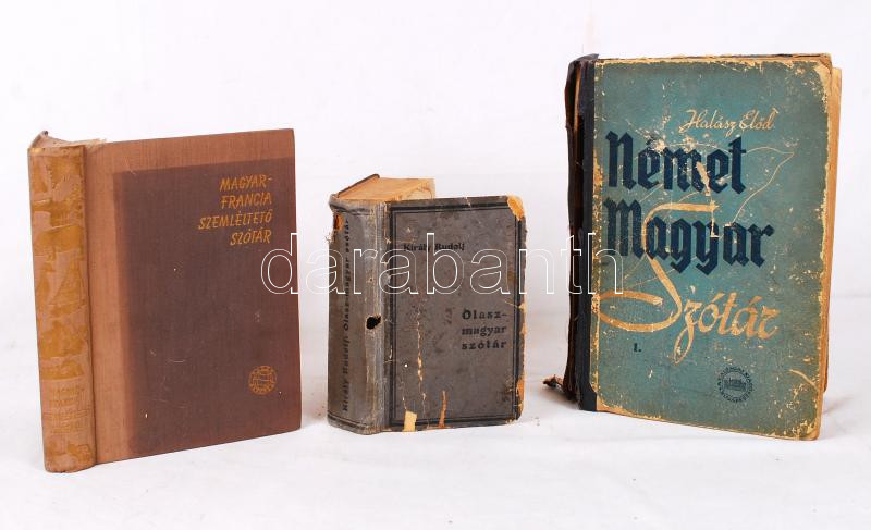 Dr. Király Rudolf: Olasz-magyar és magyar-olasz szótár, Bp., 1941, Szent István Társulat; Magyar-francia szemléltető szótár. Bp., 1959, Terra; Halász Előd: Német-magyar szótár. Bp., 1952, Akadémiai.