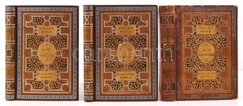 Kiadói, díszes, festett, dúsan aranyozott, egészvászon kötésben, A kötés Gottermayer Nándor műhelyében készült egyik kissé kopott, a másik kettő szép állapotban