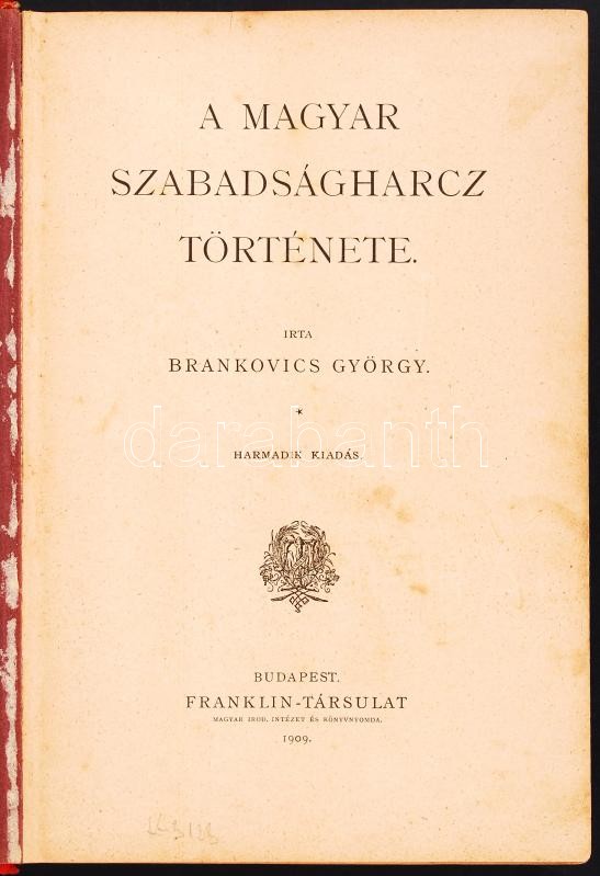 Brankovics György: A magyar szabadságharcz története. Harmadik kiadás.... https://www.darabanth.com/hu/200-Gyorsarveres/200.0/Festmeny-mutargy-papirregiseg-egyeb/Konyvek-Tortenelem~200011/Brankovics-Gyorgy-A-magyar-szabadsagharcz-tortenete-Harmadik-kiadas-Bp-1909-Franklin-Kia~II782384