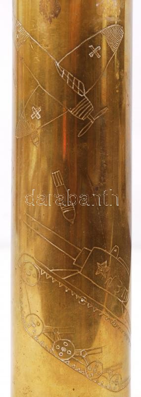 Leírás: cca 1942 II. világháborús ágyúhüvelyből készült, díszített váza / World War II. military vase made of flak 20 cm