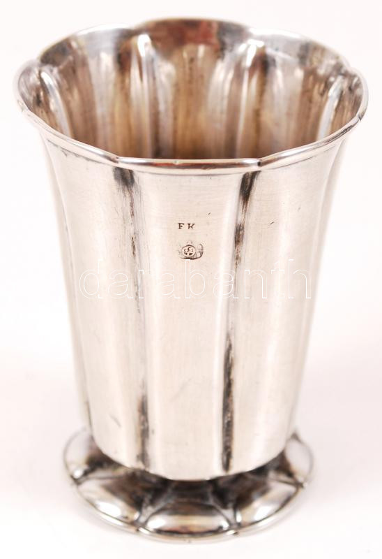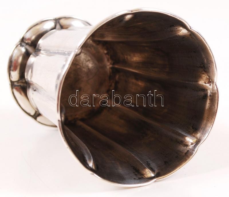 Antik ezüst (Ag.) keresztelő pohár (Bécs 1863), jelzett, mesterjeggyel (F.K.), talpán apró horpadás, m:8 cm, nettó: 68,7 g/ Antique silver christening cup with small fault