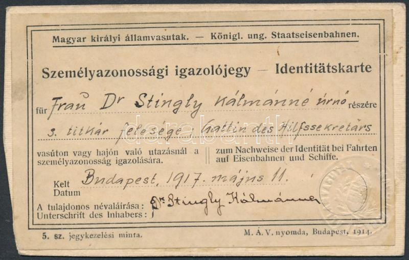 Leírás: 1917 Budapest, Fényképes személyi igazolvány (Identitätskarte) vasúton vagy hajón való utazás igazolására.