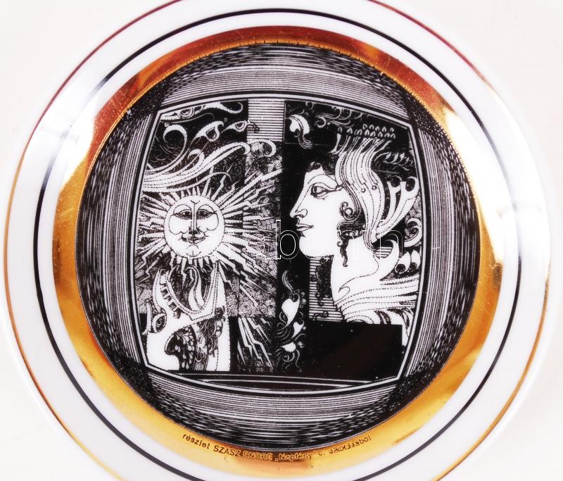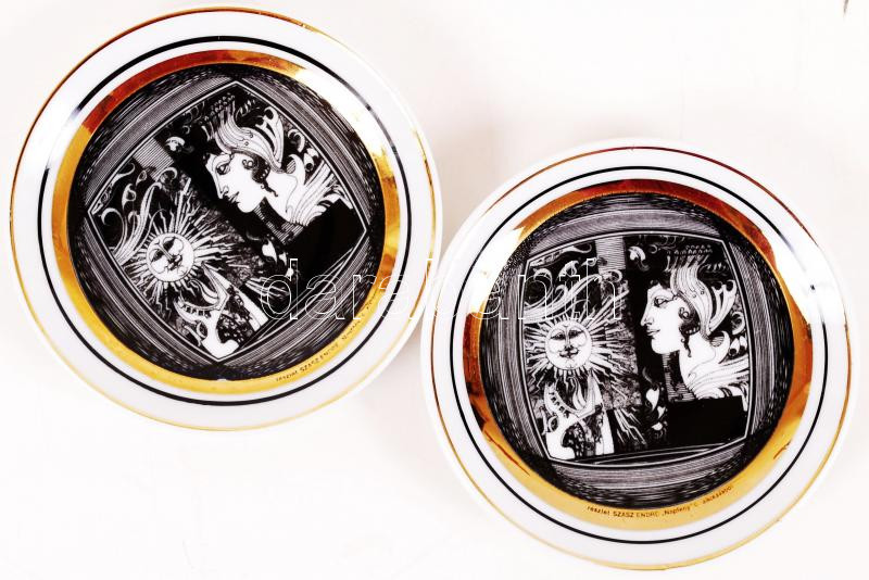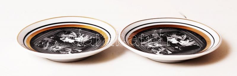 Leírás: Hollóházi Szász Endre kis tálka pár, matricás, jelzett, hibátlan, d:7,5 cm