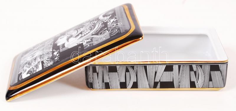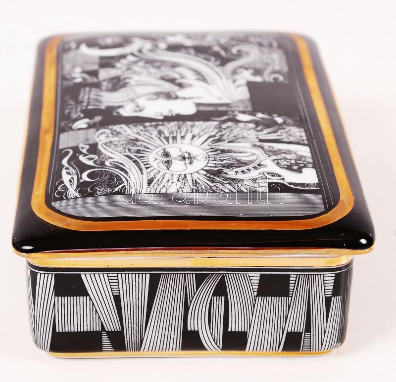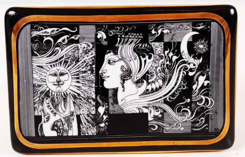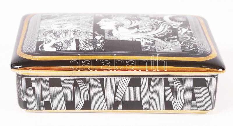 Szász Endre által tervezett Hollóházi jelzett porcelán doboz hibátlan állapotban / Faces designed by Endre Szasz Hollohaza chinaware box in flawless condition 14x9x4 cm