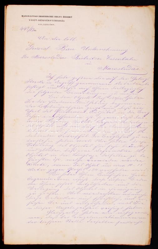 Leírás: cca 1880 A Marosludas-beszterce helyi érdekű vasút szerződései, megállapodásai, összesen kb 60 oldalnyi irat